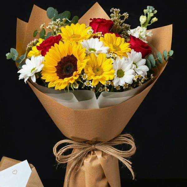 Le rose, simbolo di eleganza e affetto, rappresentano l’amore incondizionato che ci lega alle persone più importanti. Le margherite, con la loro freschezza e semplicità, sono un richiamo alla purezza e alla sincerità dei sentimenti autentici che proviamo per chi amiamo. L’imponente presenza dei girasoli, infine, dona vitalità e allegria, trasmettendo ammirazione e calore.