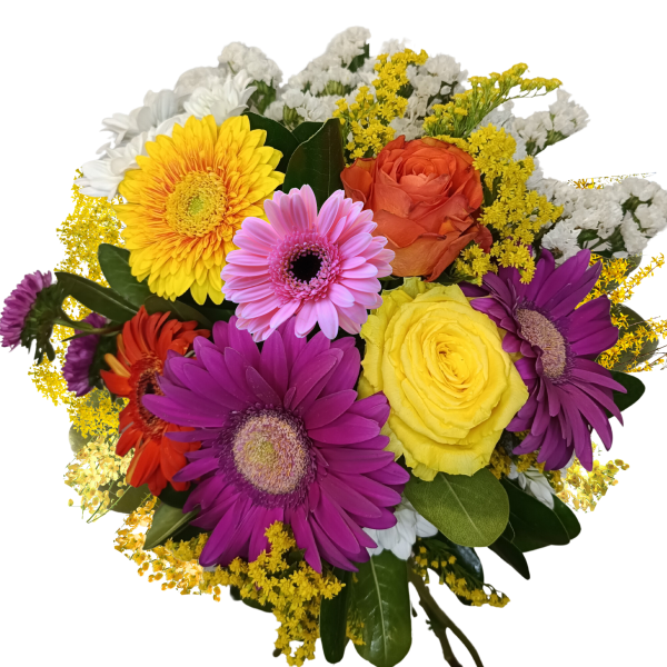 - Composizione floreale: Rose e gerbere multicolori, selezionate per freschezza e vivacità.