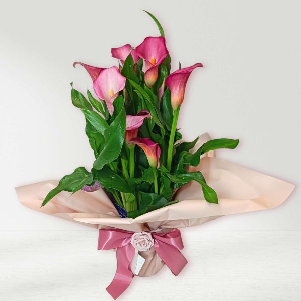 Le Calle Rosa sono un simbolo di grazia, femminilità e bellezza delicata. Con i loro fiori sinuosi e il colore raffinato, rappresentano un dono perfetto per trasmettere messaggi di amore, affetto e stile, arricchendo qualsiasi ambiente con un tocco di eleganza.