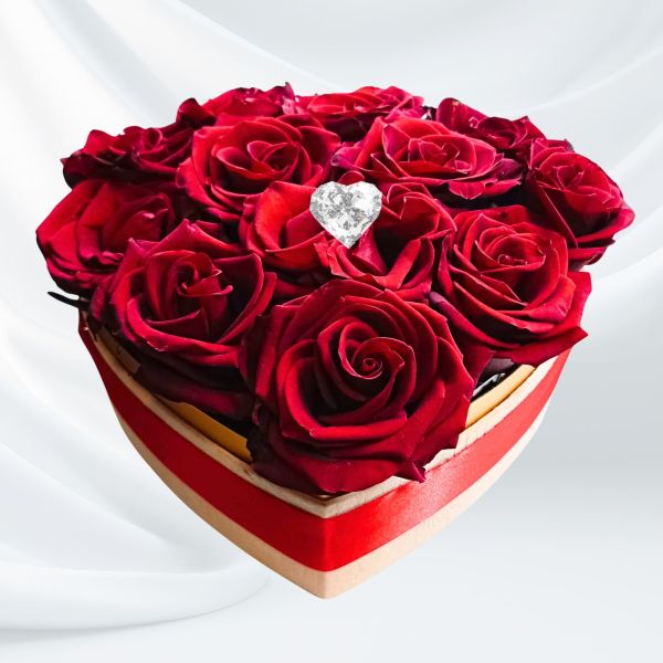 Un elegante cuore di 12 rose, racchiuse in una raffinata scatola a forma di cuore. Perfetto per San Valentino o per celebrare l’amore in ogni occasione.