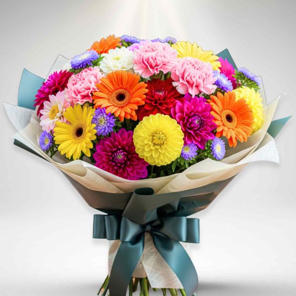 “Mi fai stare bene” è un’esplosione di allegria. Con garofani, gerbere, dalie e aster, questo bouquet trasmette gioia, benessere e affetto profondo. Il regalo perfetto per illuminare una giornata o esprimere gratitudine sincera.