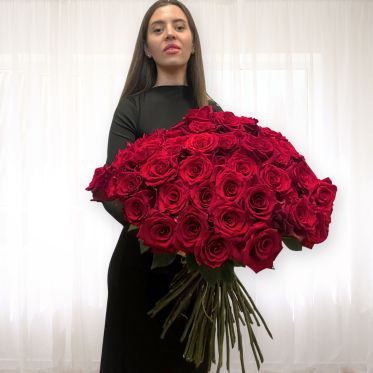 100 rose rosse Magnum, con grandi fiori, creano un bouquet unico, simbolo di amore e prestigio