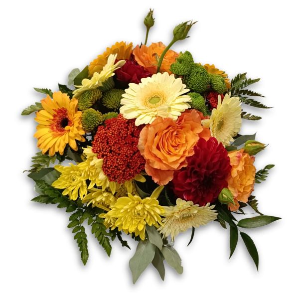 - Composizione: Il mazzo è composto da una varietà di Gerbere dai colori vivaci, unite a fiori misti selezionati per creare un effetto visivo straordinario.
